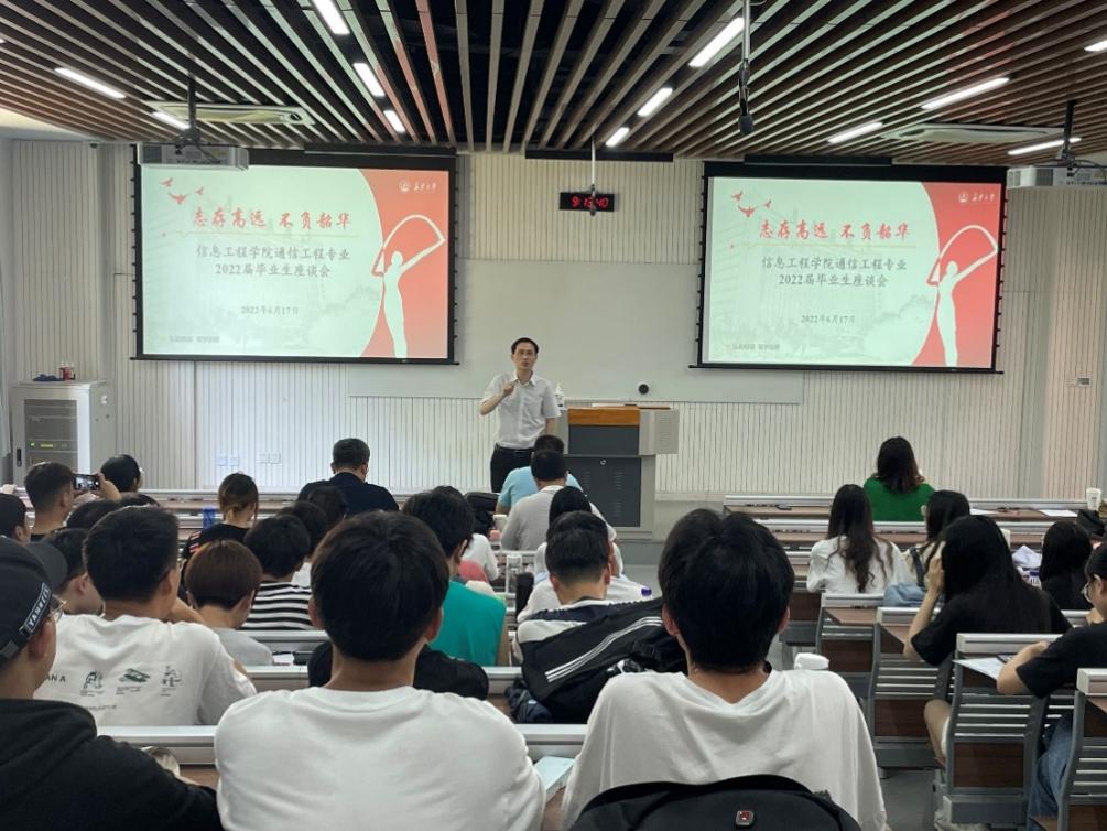 2022年6月17日,通信工程系在WX3103教室举办了2018级毕业生座谈会。学院副院长明洋,通信工程系梁中华、和洁、吴潜蛟等10多名教师和2022届全体毕业生参加了会议,会议由通信工程系党支部书记、主任罗向龙老师主持。