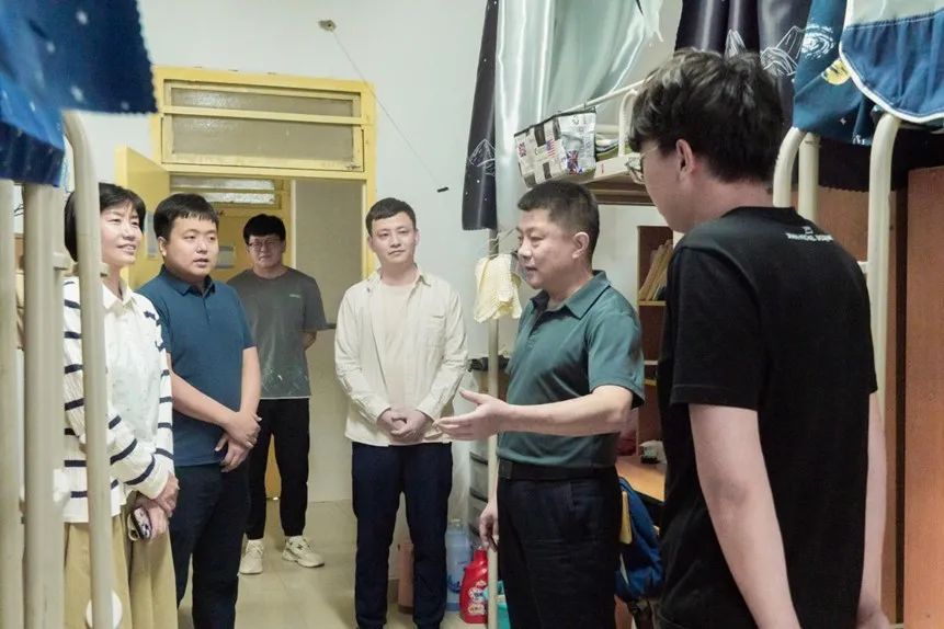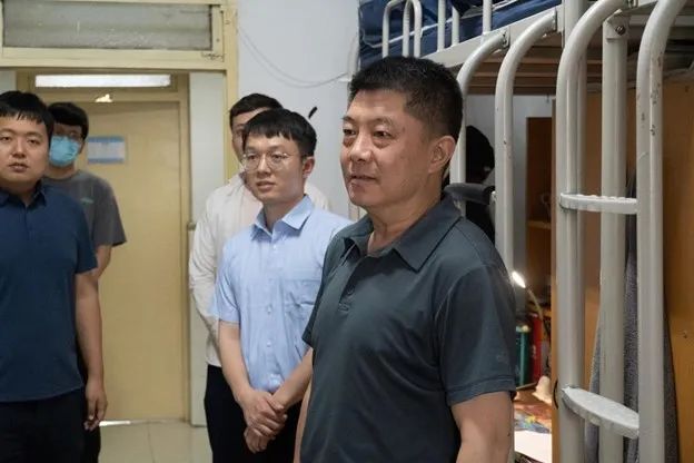 陈沛与同学们进行亲切交谈,再次说明了宿舍安全和良好卫生的重要性,询问了同学们平时学习生活中遇到的困难,结合经验为同学们答疑解惑,同时嘱咐同学们要勤于学业,与室友团结友爱互帮互助,构建和谐寝室。