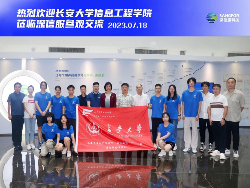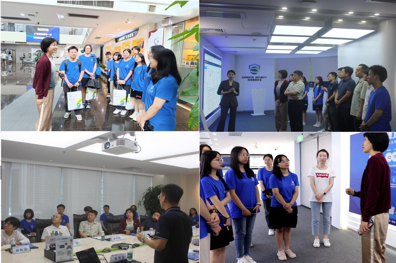 学院领导与实践团队一同前往深圳市深信服科技股份有限公司,聆听企业介绍、校友的介绍及分享以及校园招聘情况介绍。随后,大家一同参观深信服科技展厅。企业工作人员为大家展示深信服研发的一系列网络安全产品并演示网络安全管理界面,着重介绍产品的优势以及其解决的痛点。